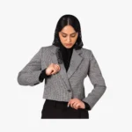 طراحی خاص و مدرن این تک کت کراپ چهارخانه، آن را به یک انتخاب ایدهآل برای هر موقعیتی تبدیل کرده است.
