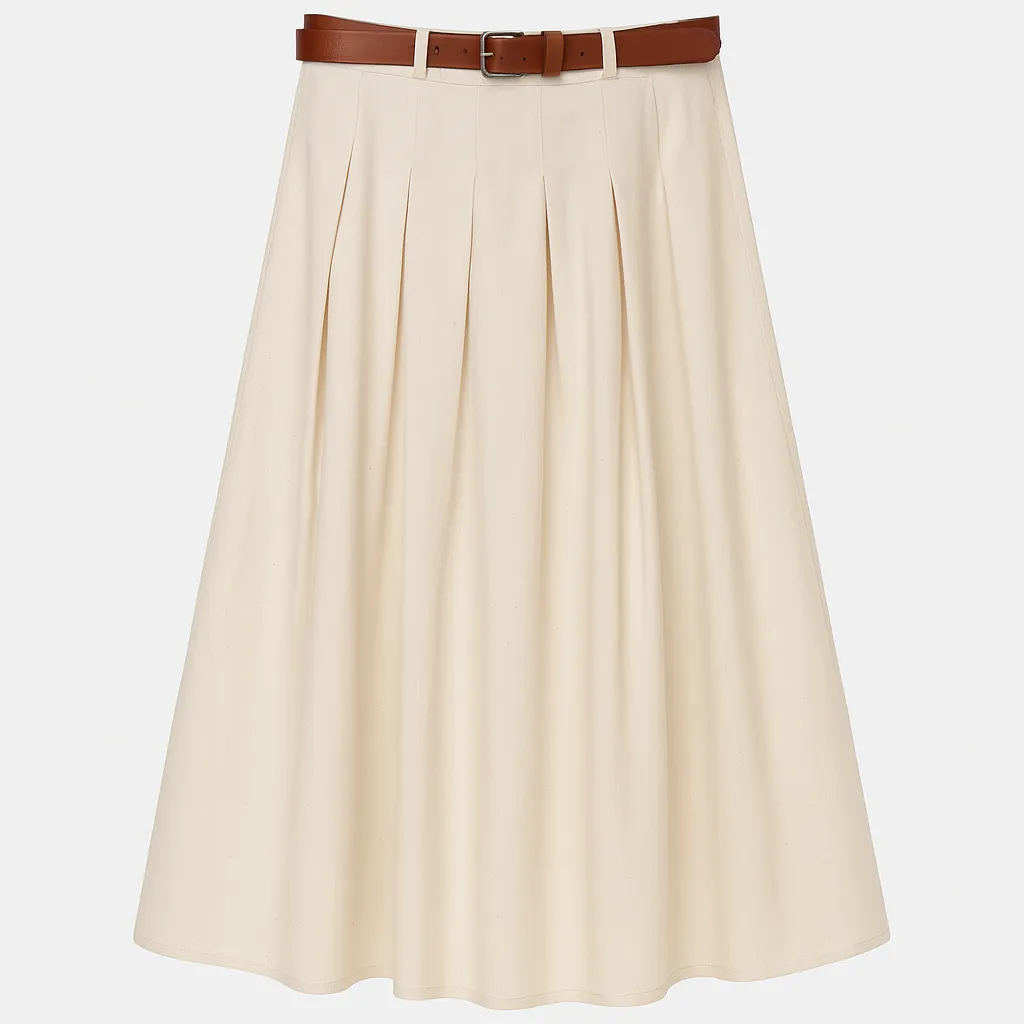 - کمر: دارای بند کرم طرح چرم که جلوهای خاص و شیک به محصول میدهد و دامن را روی کمر به خوبی فیکس میکند.