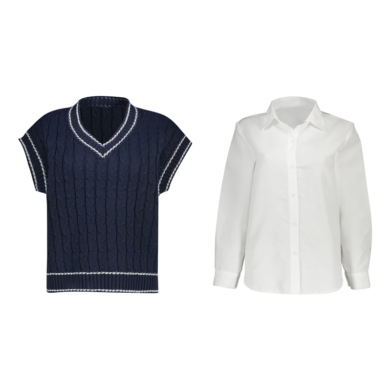 دو تیکه شومیز سفید و ژیله بافت زنانه فارل