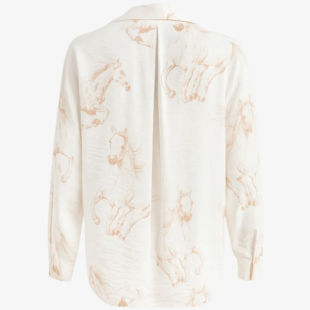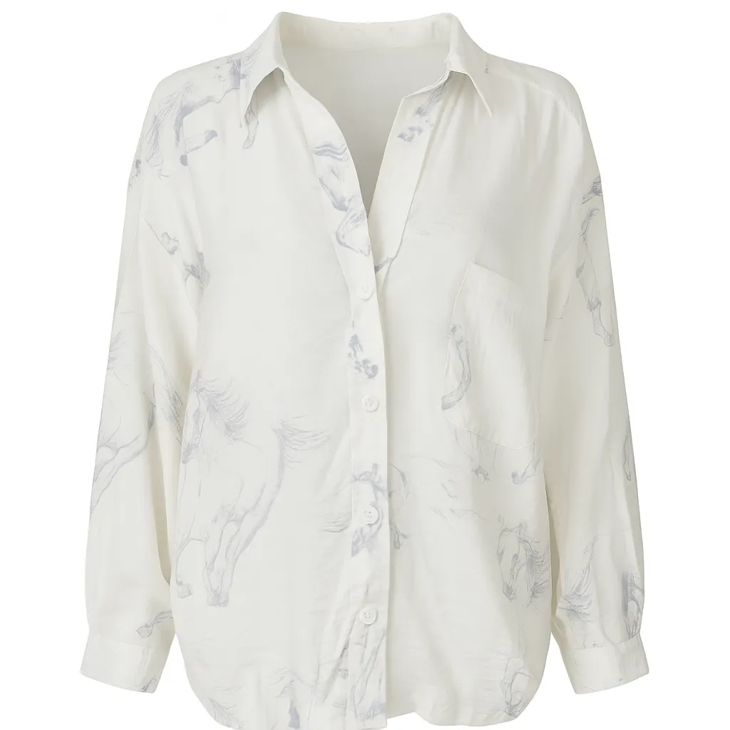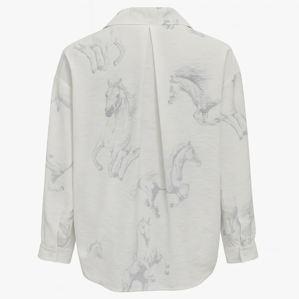شومیز آستین زنانه پنجره بلند طرح اسب سفید فری سایز