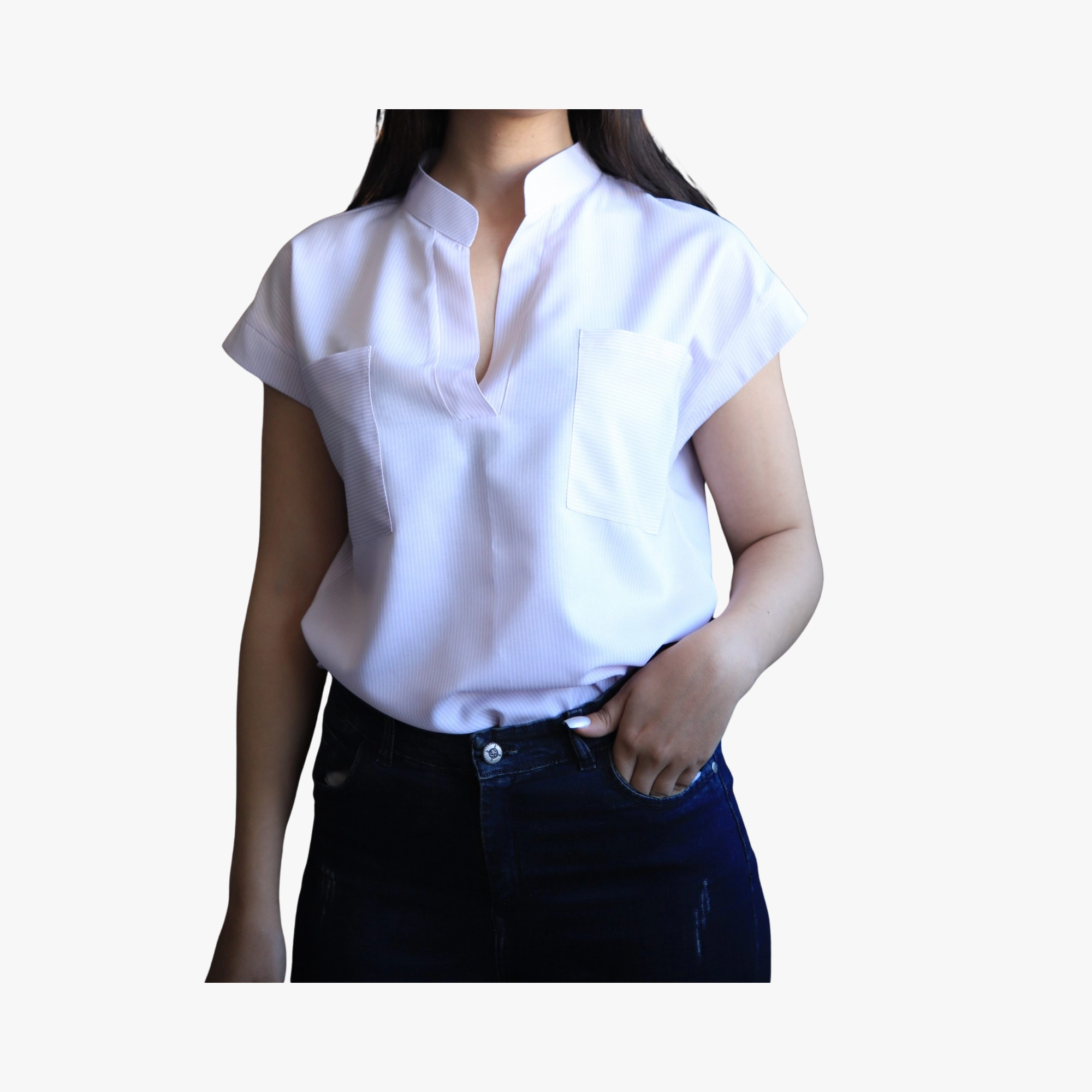 شومیز آستین کوتاه سری Bliss برند فارل با پارچه برجسته و بافتدار تولید شده است.