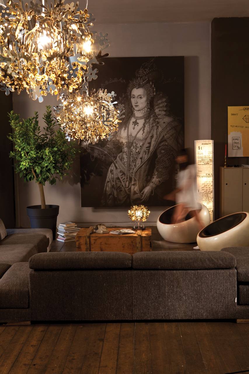 چراغ آویز فیورلا یکی از خاصترین محصولات دکوراتیو است که با طراحی الهامگرفته از فرم گلها و شاخههای طبیعی، جلوهای هنری و منحصربهفرد به فضای شما میبخشد. این چراغ با ترکیب قطعات ظریف فلزی به شکلی سهبعدی ساخته شده و هنگام روشن شدن، بازی خیرهکنندهای از نور و سایه را روی دیوار و سقف ایجاد میکند.