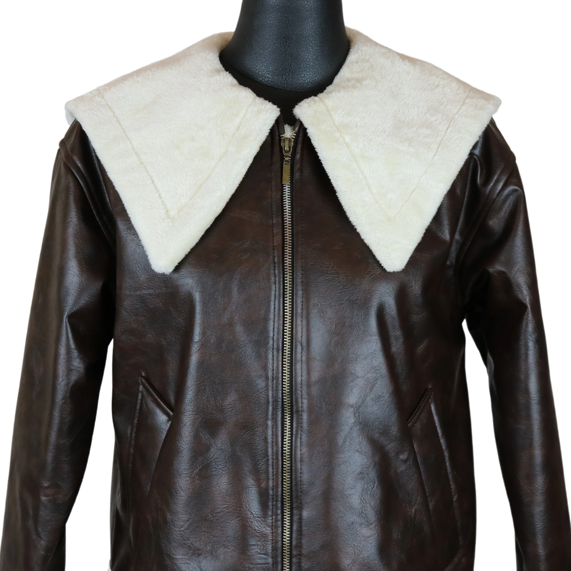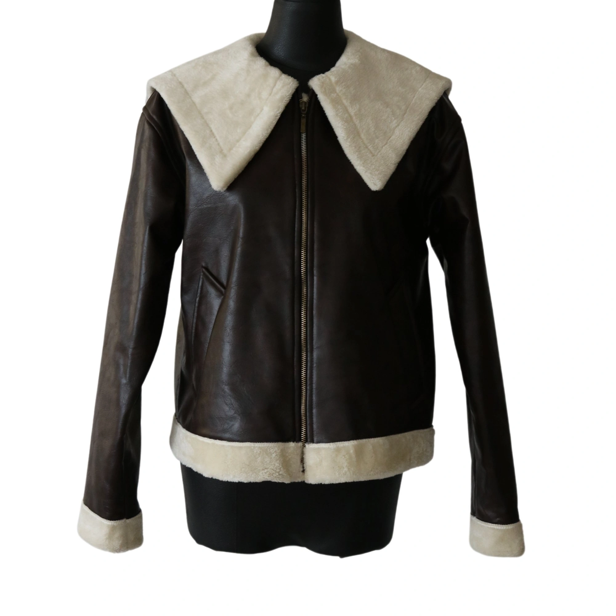 کاپشن زنانه چرم بوفالو پنجره کد F7145