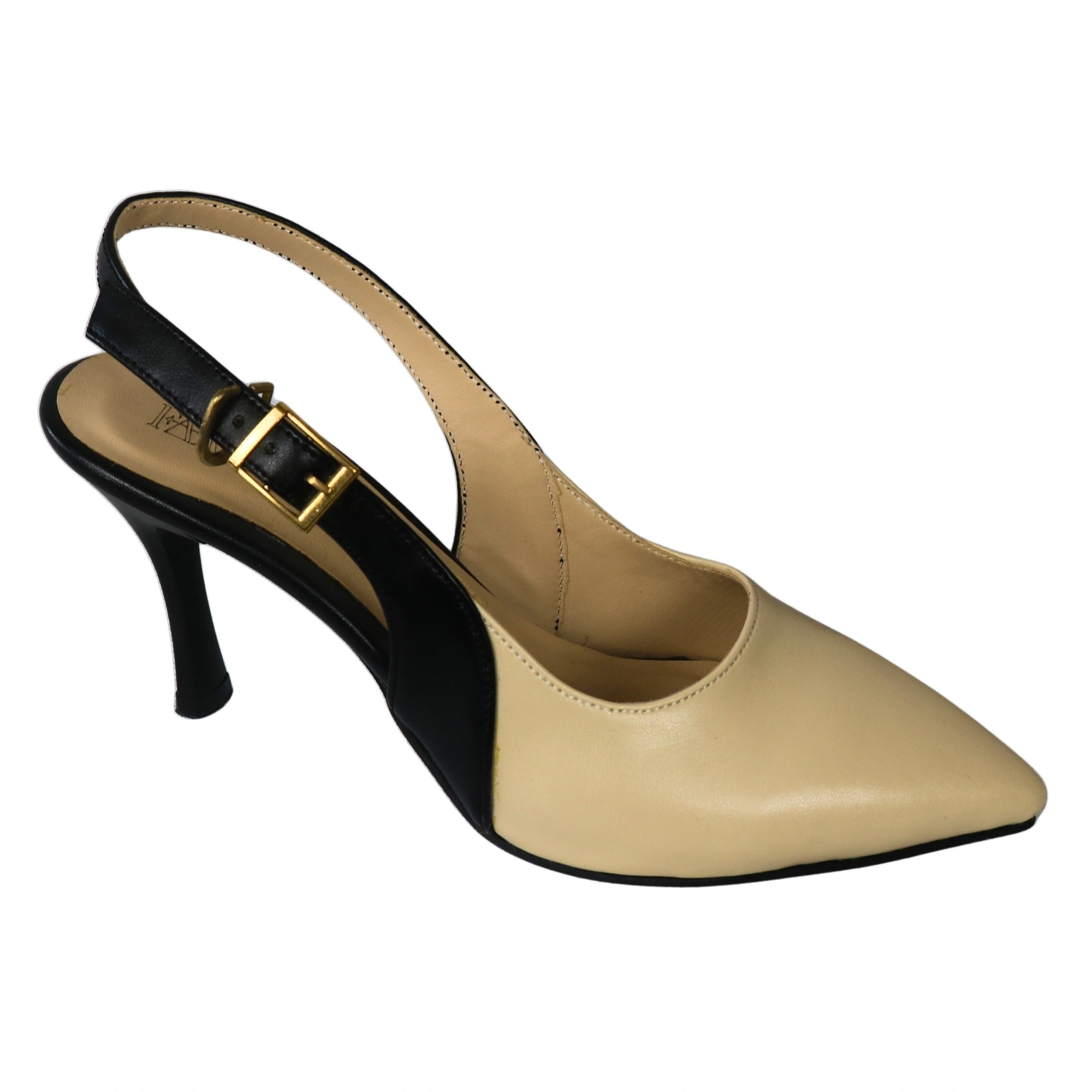 اگر به دنبال یک کفش زنانه شیک، خاص و ماندگار هستید، کفش کرم و مشکی پاشنه باریک برند پنجره بهترین انتخاب شما خواهد بود.