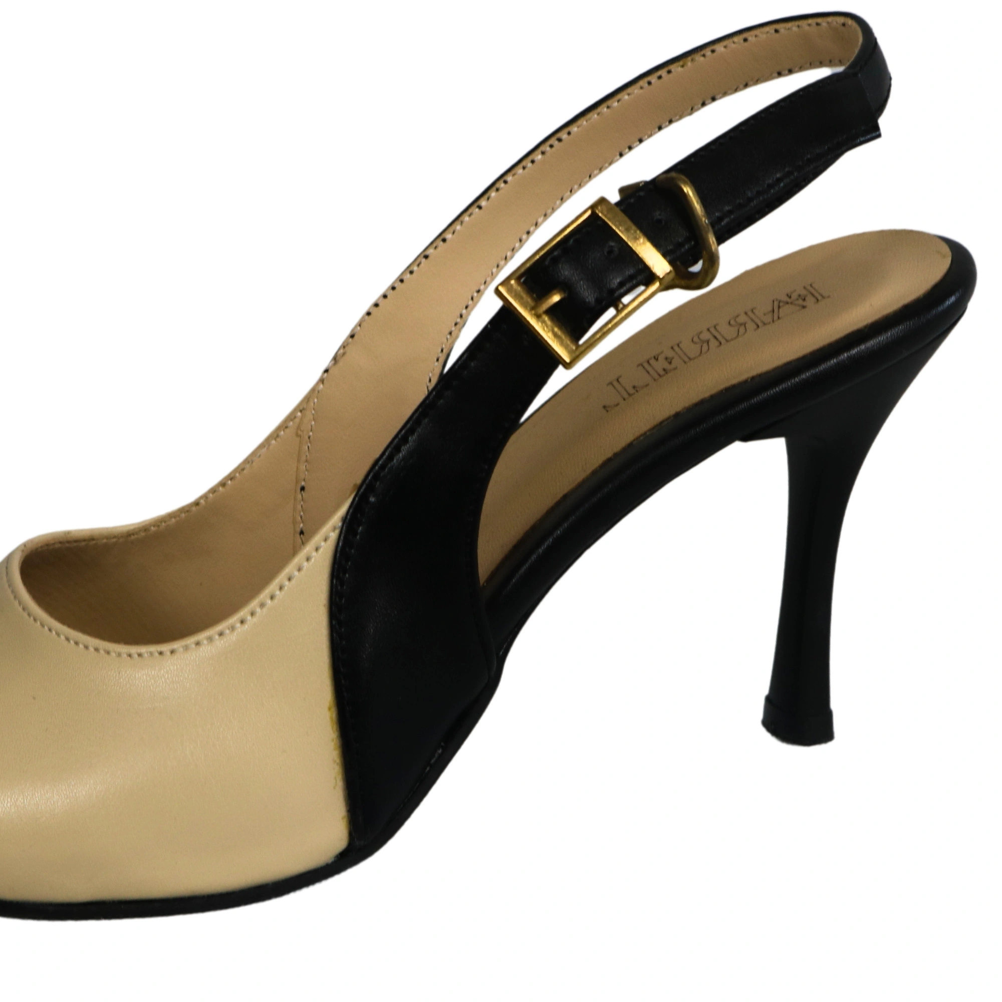 یکی از ویژگیهای بارز این کفش، استفاده از رنگ کرم و مشکی است که ترکیبی از زیبایی و وقار را به همراه دارد.