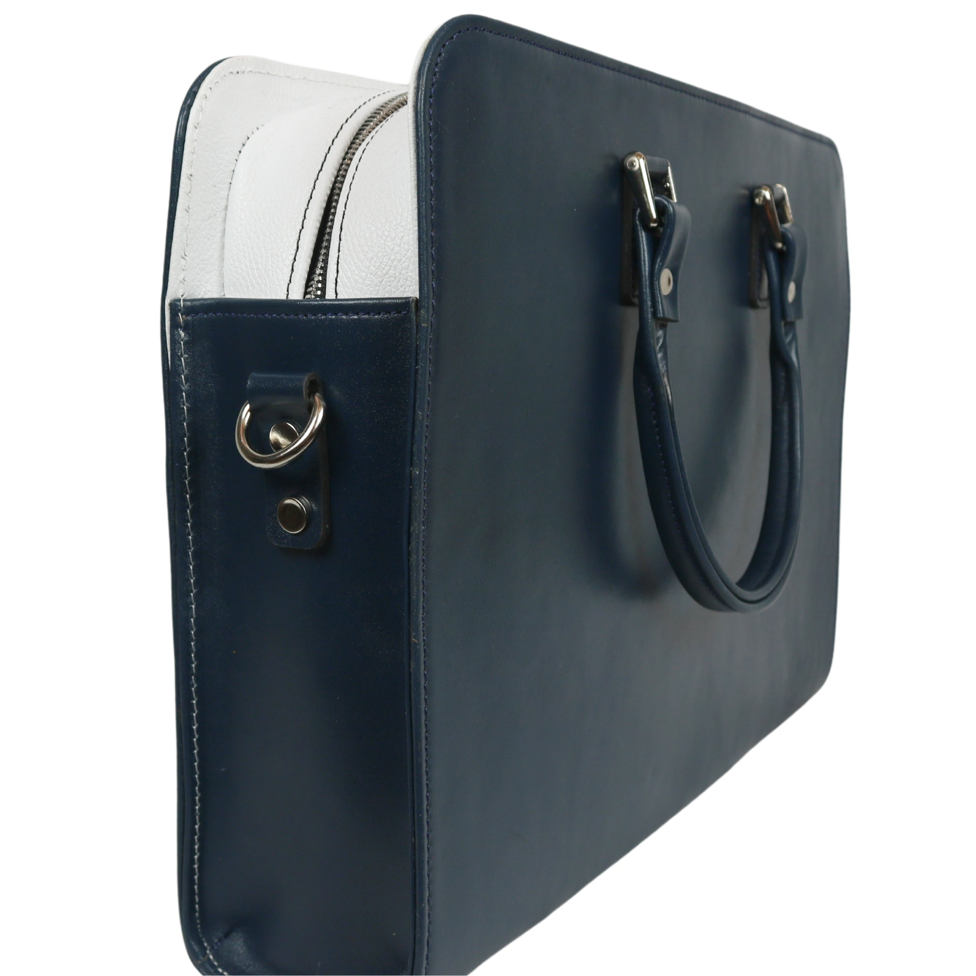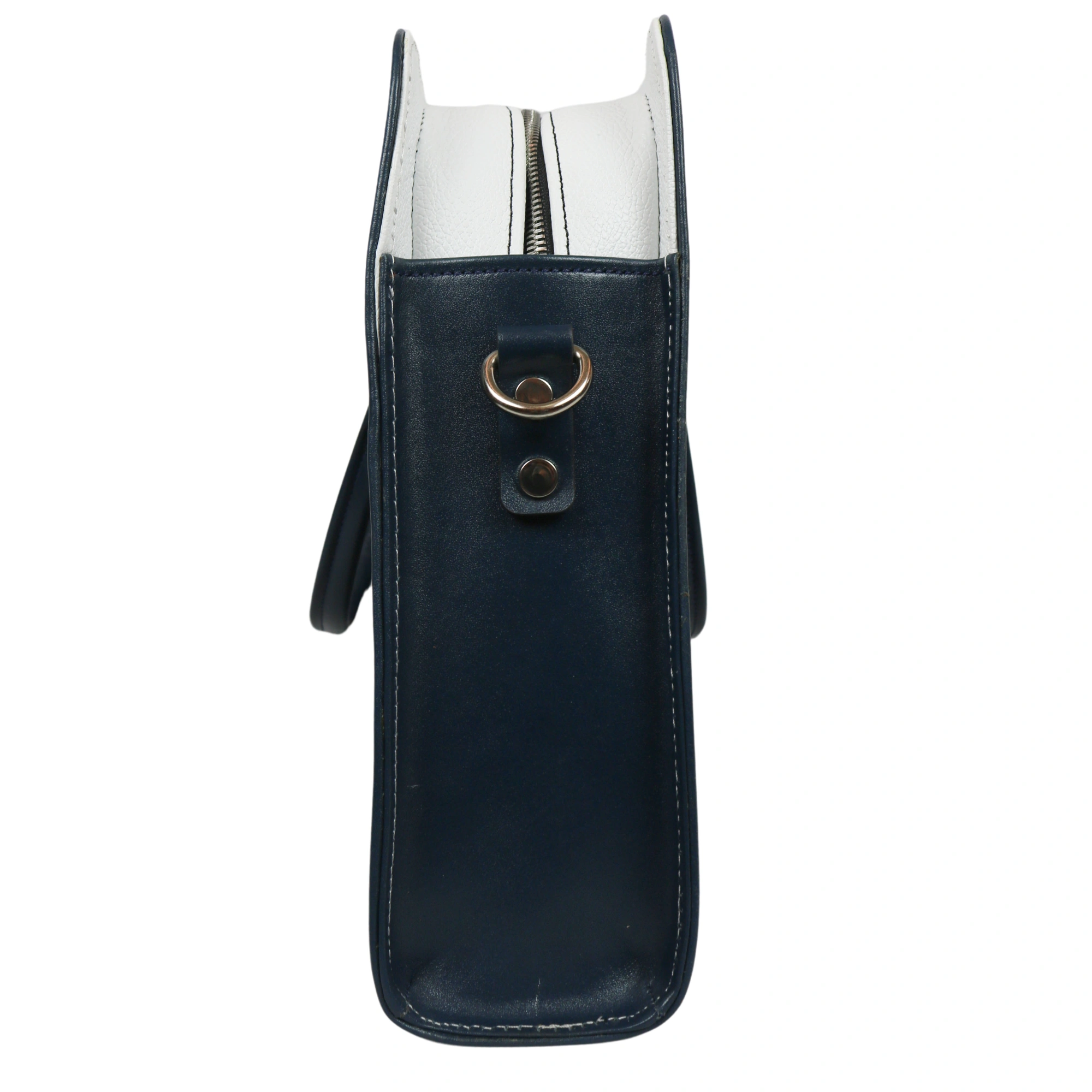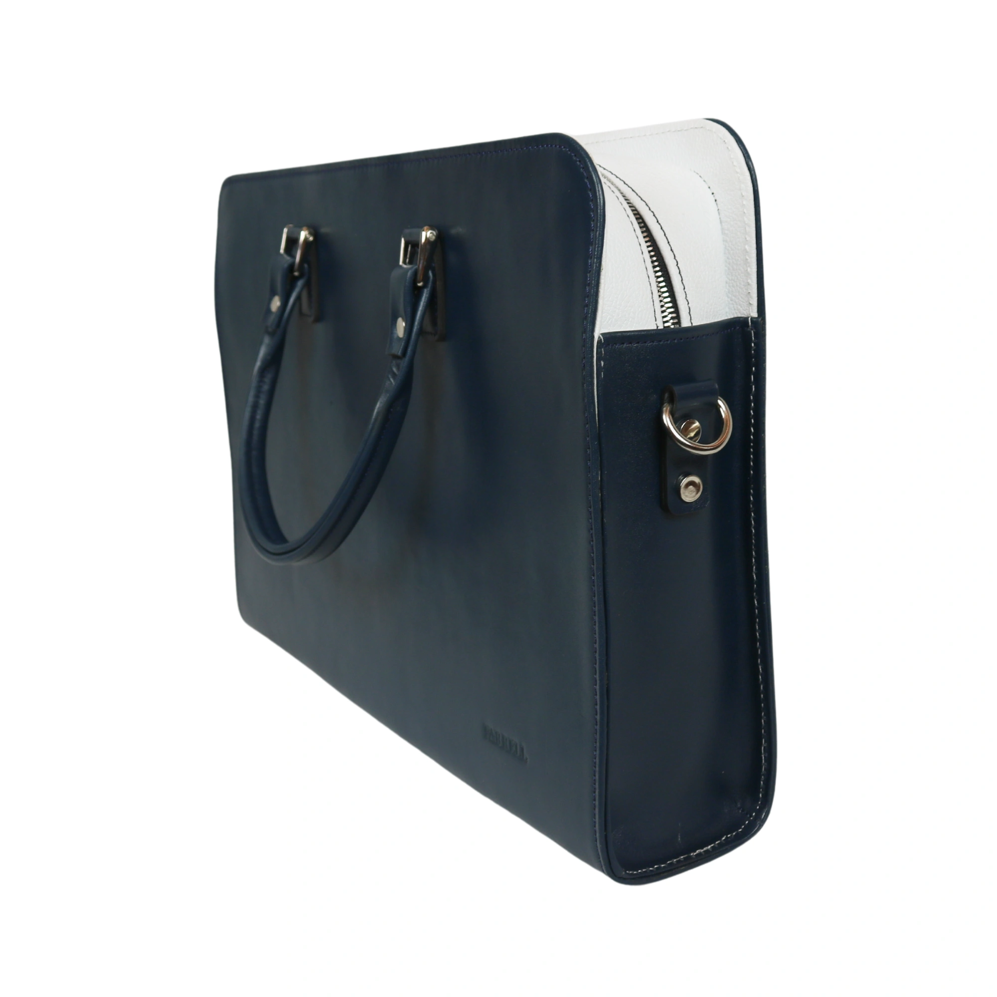 این کیف با طراحی مدرن و بهرهگیری از بهترین مواد اولیه، انتخابی عالی برای بانوانی است که به استایل حرفهای و خاص خود اهمیت میدهند. ترکیب رنگ خاص سفید و سرمهای باعث شده تا این کیف در جلسات کاری، کنفرانسها و محیطهای رسمی، جلوهای خاص داشته باشد.