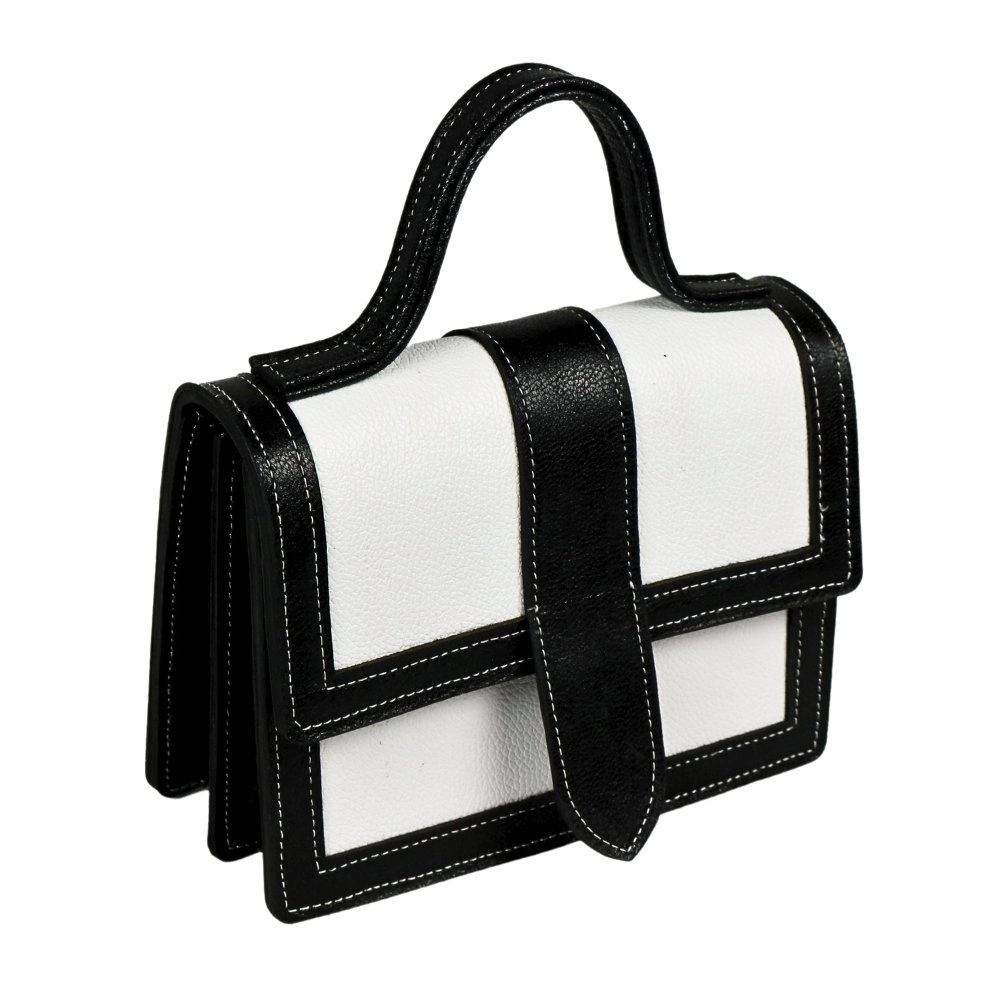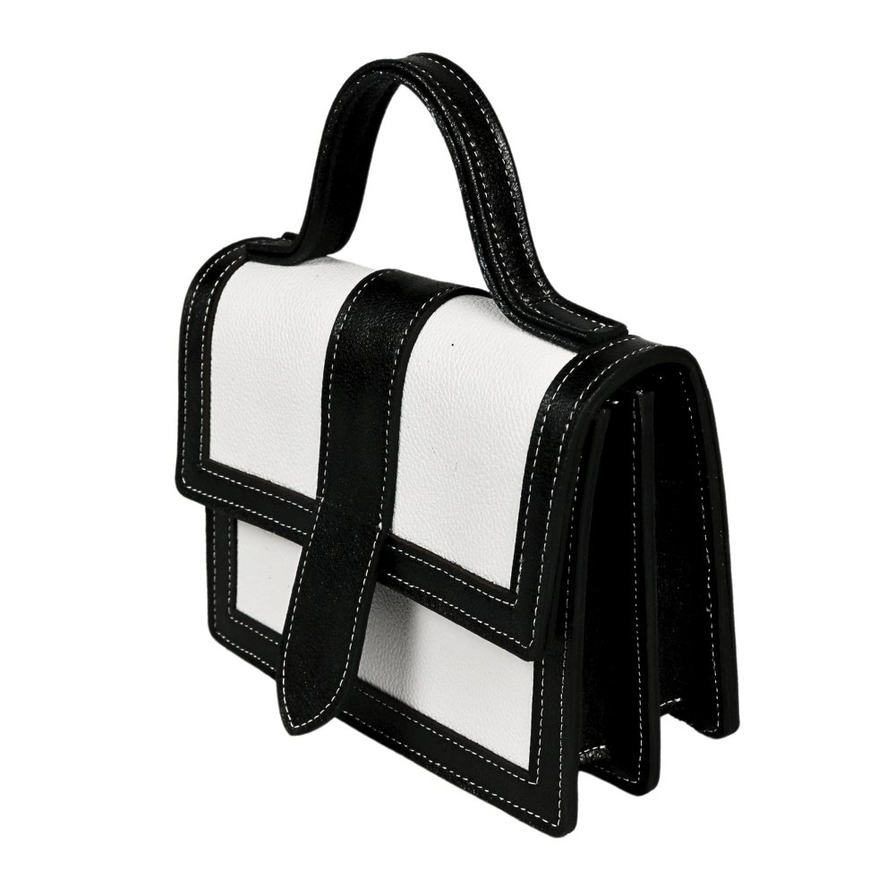 کیف چرم دستی زنانه سفید پنجره مشکی
