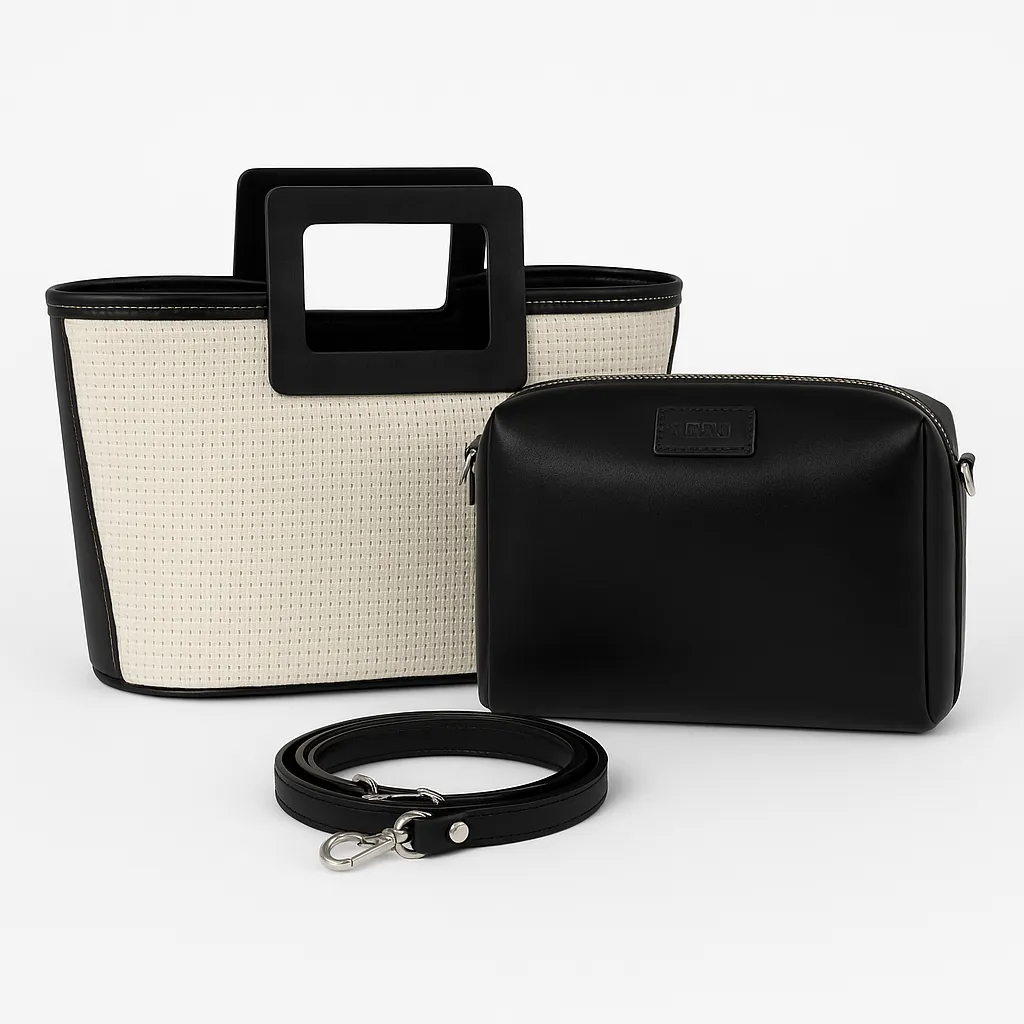 اگر به دنبال یک کیف متفاوت، خاص و کاملاً کاربردی برای استفاده روزمره هستید، این مدل با ترکیب چرم اصل و پارچه حصیری وارداتی یک انتخاب جذاب است. رنگ سفید و مشکی آن ظاهری مینیمال و مدرن به استایل شما میدهد و کیف داخلی کوچکتر، حمل وسایل ارزشمند را برایتان آسانتر میکند.