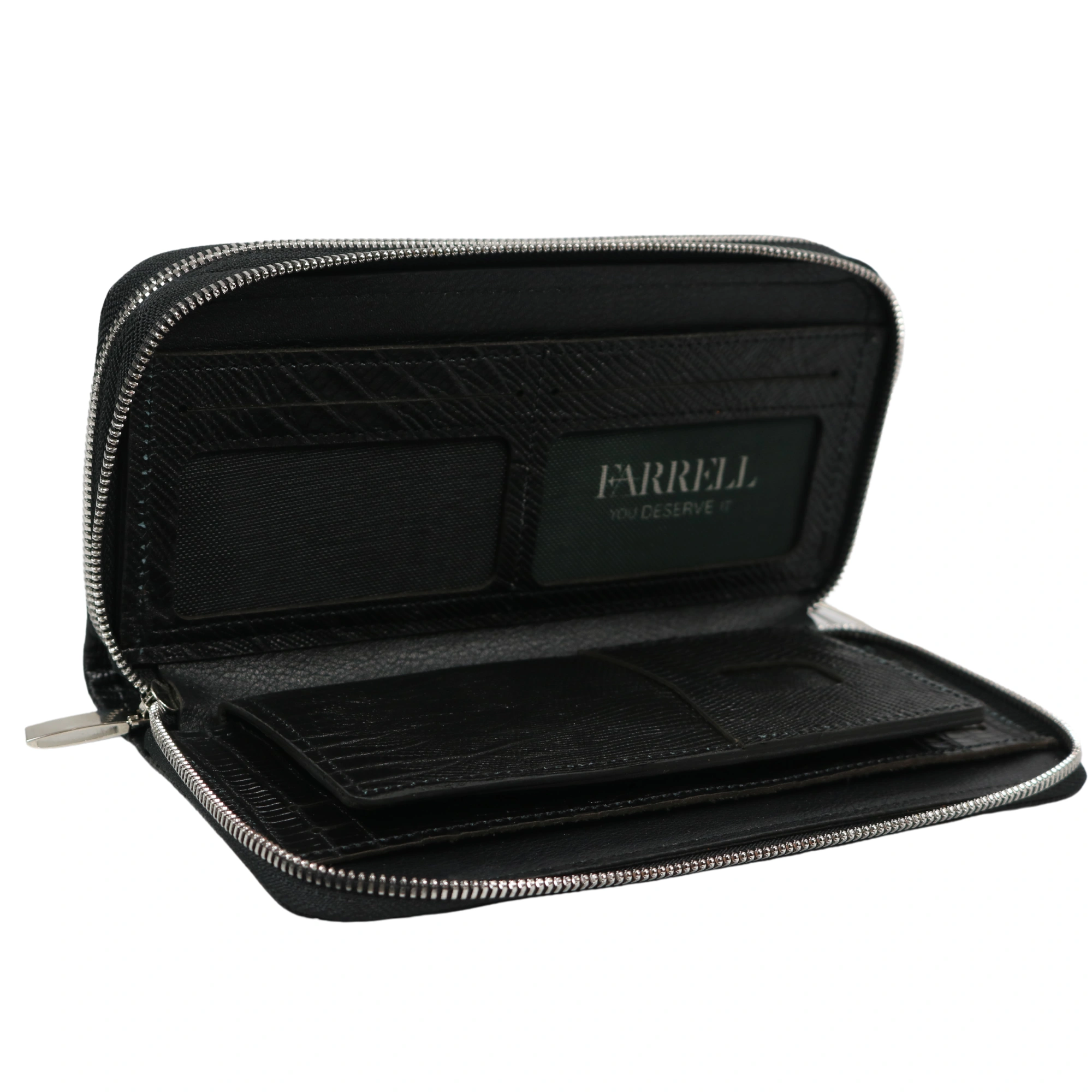 یکی از ویژگی‌های برجسته این کیف، طراحی دو زیپ آن است. این طراحی نه تنها به شما امکان می‌دهد که به راحتی به تمامی محتویات کیف دسترسی داشته باشید، بلکه باعث می‌شود که فضای داخلی به دو قسمت مجزا تقسیم شود. این امر کمک می‌کند که شما بتوانید پول نقد، کارت‌ها و مدارک خود را به‌طور مرتب و سازمان‌یافته نگهداری کنید.